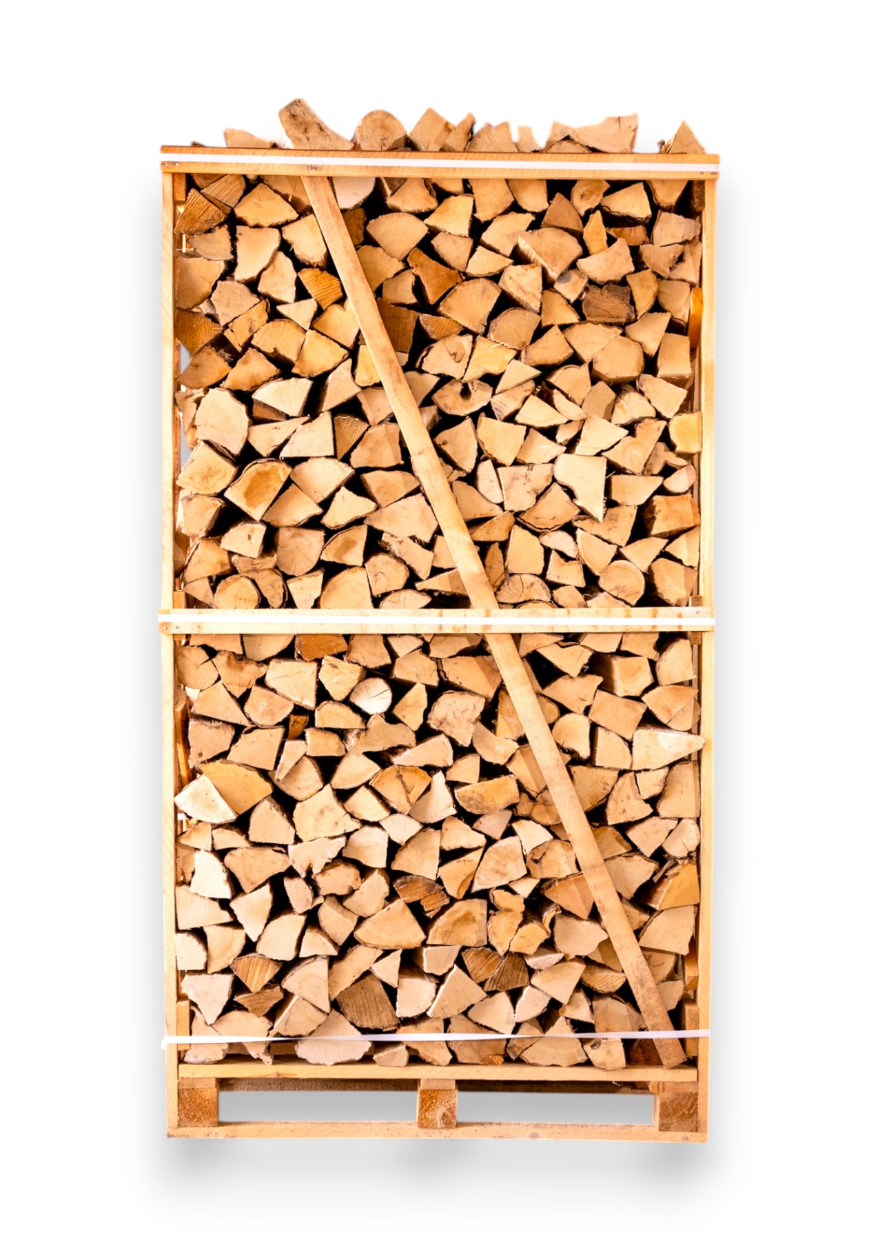 Džiovintos skroblo malkos medinėje dežėje ( 1.8 erdmetrio)
